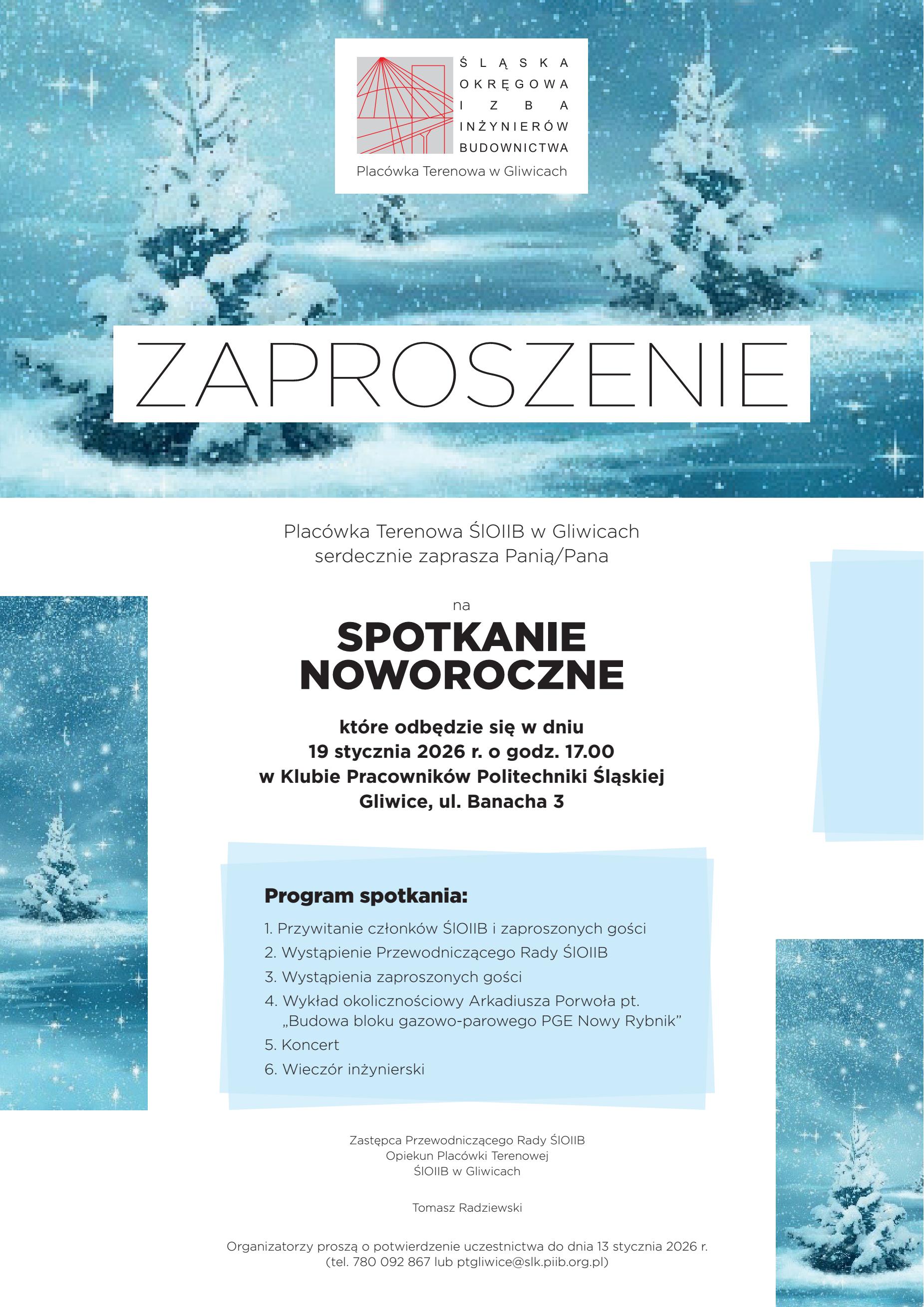 Spotkanie odbędzie się 19 stycznia br. o godzinie 17:00 w Klubie Pracowników Politechniki Śląskiej w Gliwicach przy ul. Banacha 3.
